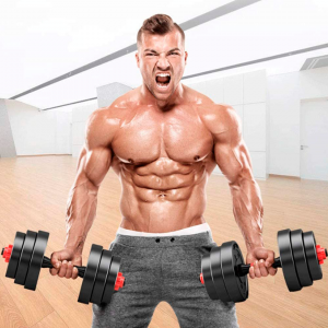 - Mancuernas adaptables que forman 1 barra para pesas