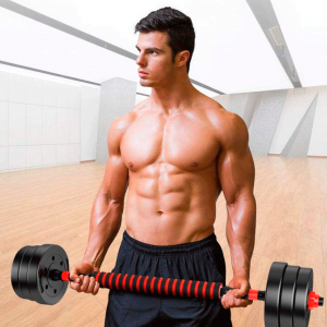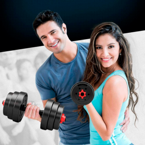 - Mancuernas adaptables que forman 1 barra para pesas